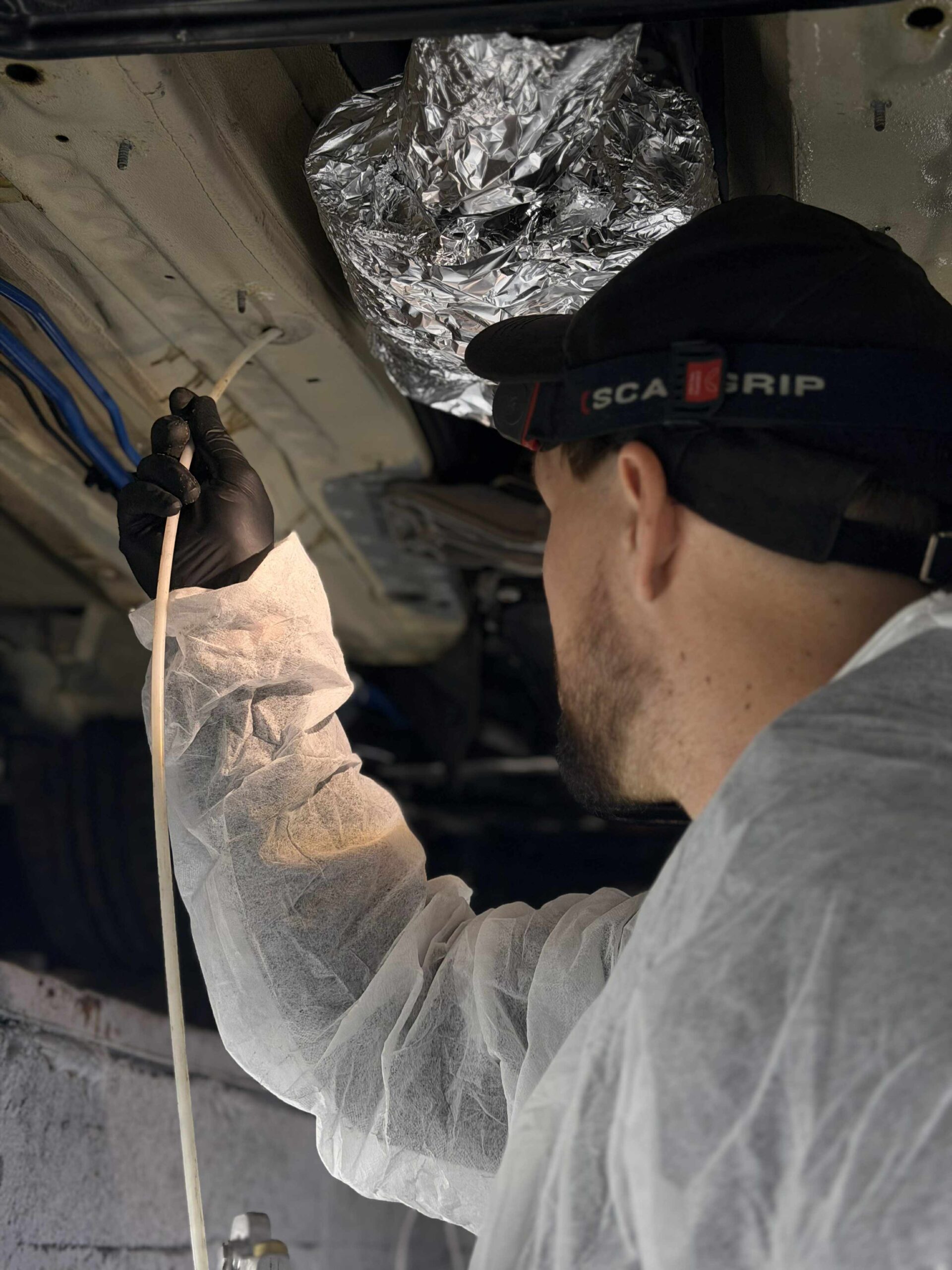 Aplikacja systemu Waxoyl – specjalistycznych preparatów tworzących trwałą barierę antykorozyjną, chroniących przed wilgocią i uszkodzeniami mechanicznymi.